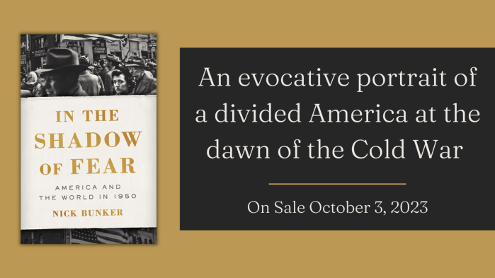 Nick’s new book In the Shadow of Fear: America and the World in 1950 – tells the story of ten fraught and dramatic months during the early Cold War. Beginning on Labor Day, 1949, when the Soviet Union had just tested its first atomic bomb, In the Shadow of Fear weaves the many strands of the era’s history into a multi-dimensional narrative centered on the United States but also reaching out to Britain, France, Mao’s China, the Vietnam of Ho Chi Minh and the India of Nehru.